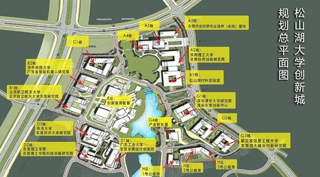 园区简介:松山湖大学创新城位于广深科技创新走廊重要节点位置,项目总投资额约27.1亿元,占地约397亩,总建筑面积约53万平方米。项目分为科研区,企业孵化区、高端配套区三大部分,将建成研究院大楼、创业投资大厦、孵化器大楼、学术交流中心、人才公寓等,拟引入10—15个大学研究院,集聚高科技专业人才约1万人,形成集“产、学、研、商、住、办”于一体的大型科研产业综合体。