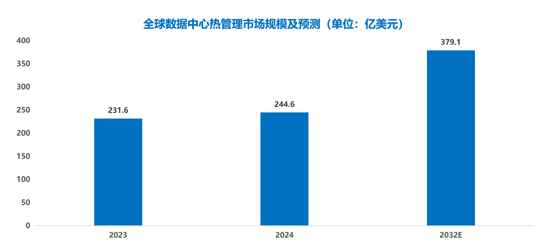 数据显示,数据中心热管理市场正迎来高速增长。2024年全球数据中心热管理市场规模约244.6亿美元,预计2032年将达到379.1亿美元,复合年增长率(CAGR)为5.63%。