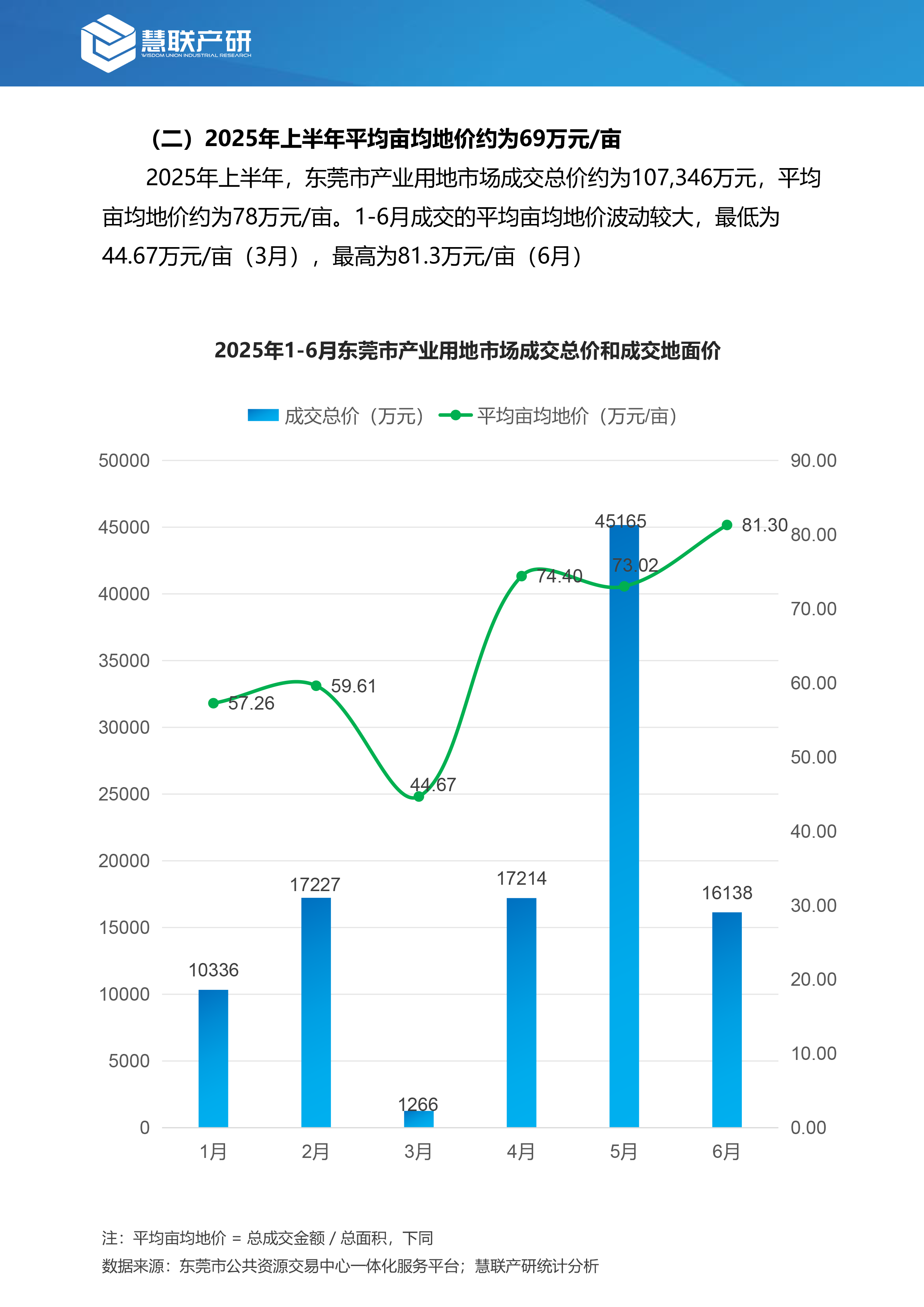 2025年上半年,东莞产业用地成交共41宗,合计出让用地面积约103.08万平方米(折合约1546亩),成交总价约10.73亿元,平均亩均地价约69万元/亩。