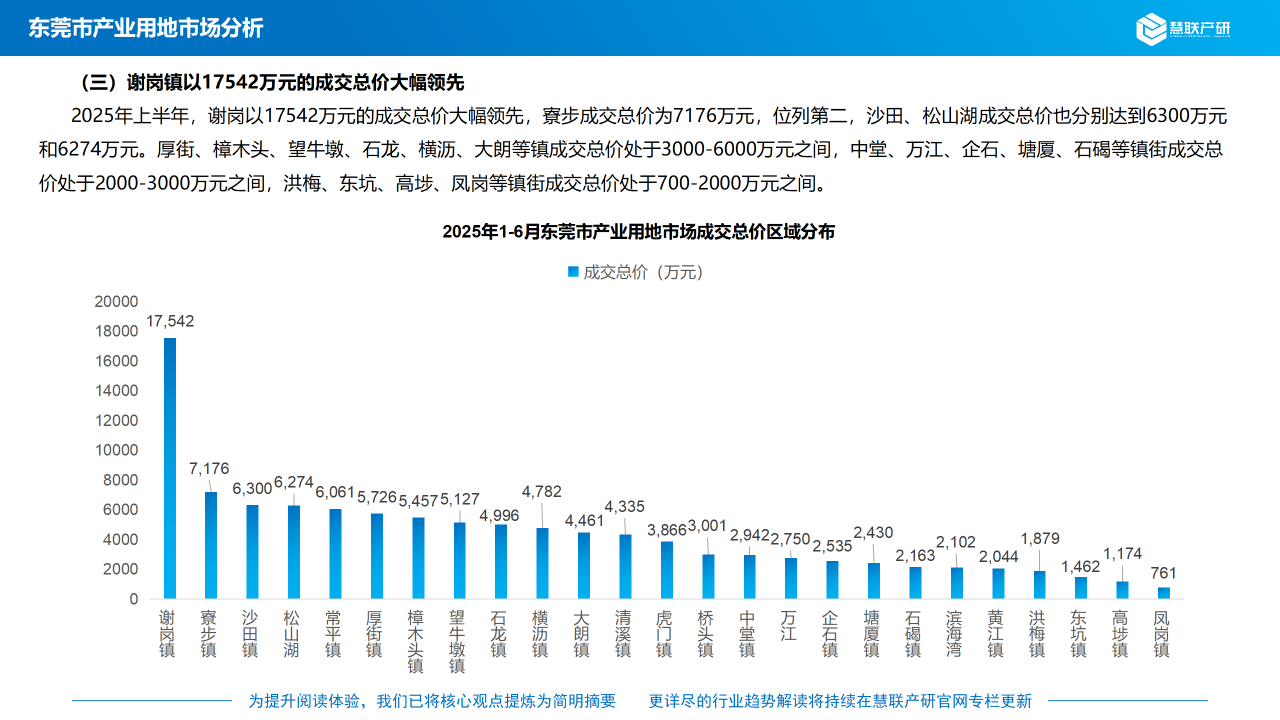(三)谢岗镇以17542万元的成交总价大幅领先