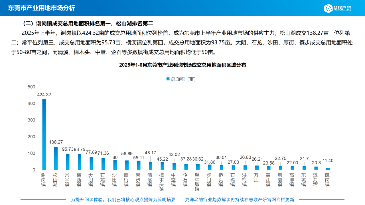 (二)谢岗镇成交总用地面积排名第一,松山湖排名第二