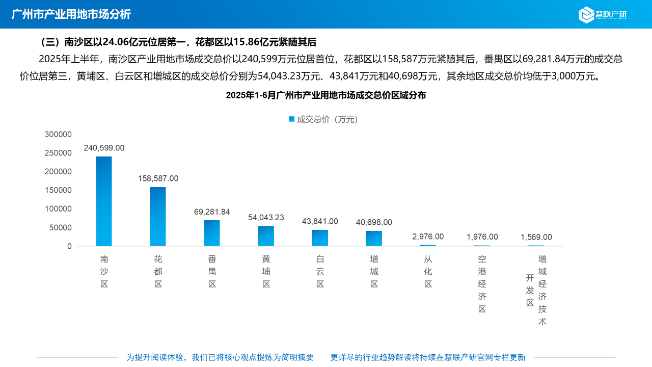 (三)顺德区以168,510万元成交总价位居第一,南海区以159,831万元紧随其后