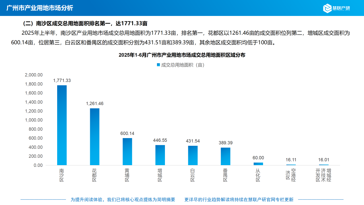 (二)南沙区成交总用地面积排名第一,达1,771.33亩