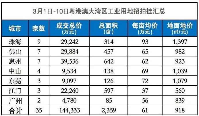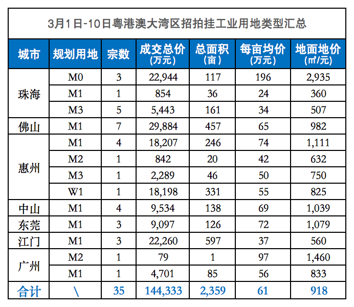 1月20日-2月11日粤港澳大湾区一共出让40宗工业用地;其中,M2有一宗、M1/W1有三宗,其余均为M1。