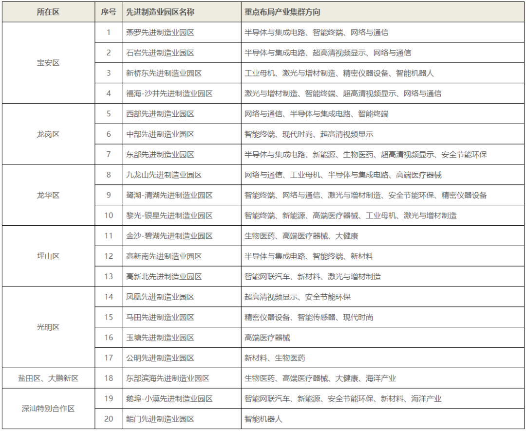 6月6日,深圳市发布《深圳市20大先进制造业园区空间布局规划》