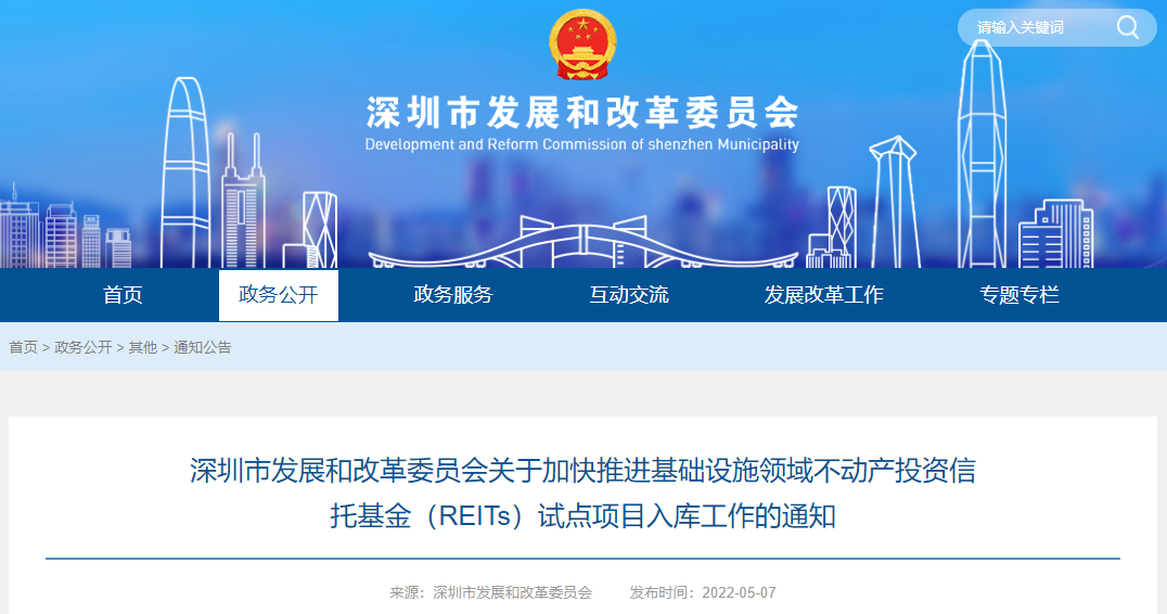 5月7日,深圳发改委加快推进REITs试点项目入库工作