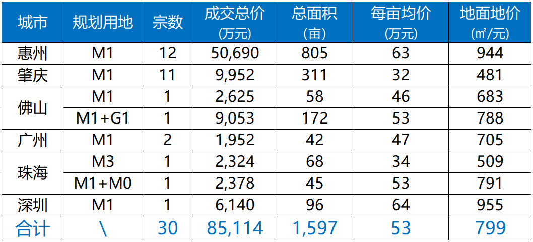 4月1日-15日,粤港澳大湾区一共出让30宗工业用地;其中,M1+G1、M1+M0、M3各有一宗,其余均为M1。