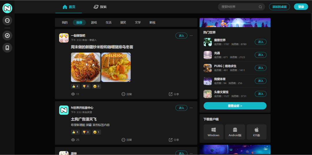 360于近期推出了一款元宇宙产品“N世界”。据介绍,“N世界”是新一代的兴趣元宇宙,这里由一个个的“兴趣世界”构成,人人都可以创建自己的世界。用户在其中可以打造兴趣话题、语音互动沉浸式玩法、身份牌、私人专属领地。据接近360的人士透露,内部对这款产品比较重视,并给予了“N世界”价值千万元的“n.cn”域名作为官网。这并不是周鸿祎首次入局元宇宙。就在2021年底,360集团董事长周鸿祎在接受媒体采访时表示:其实“花椒”早就做过类似元宇宙的产品,但不是特别成功。