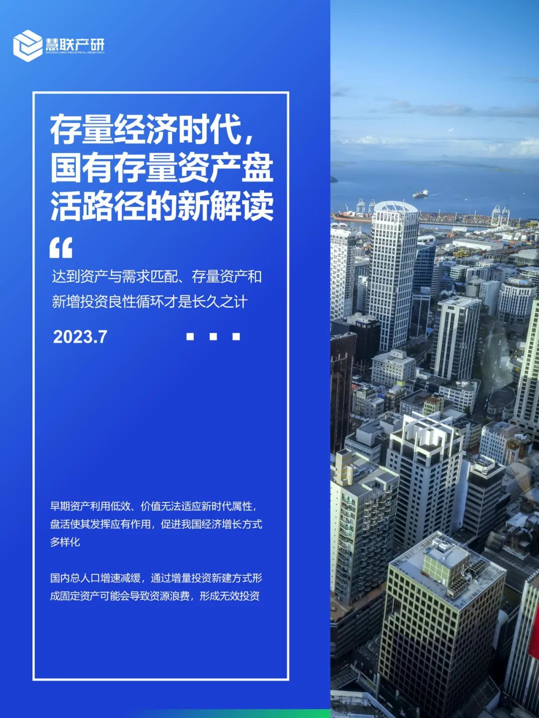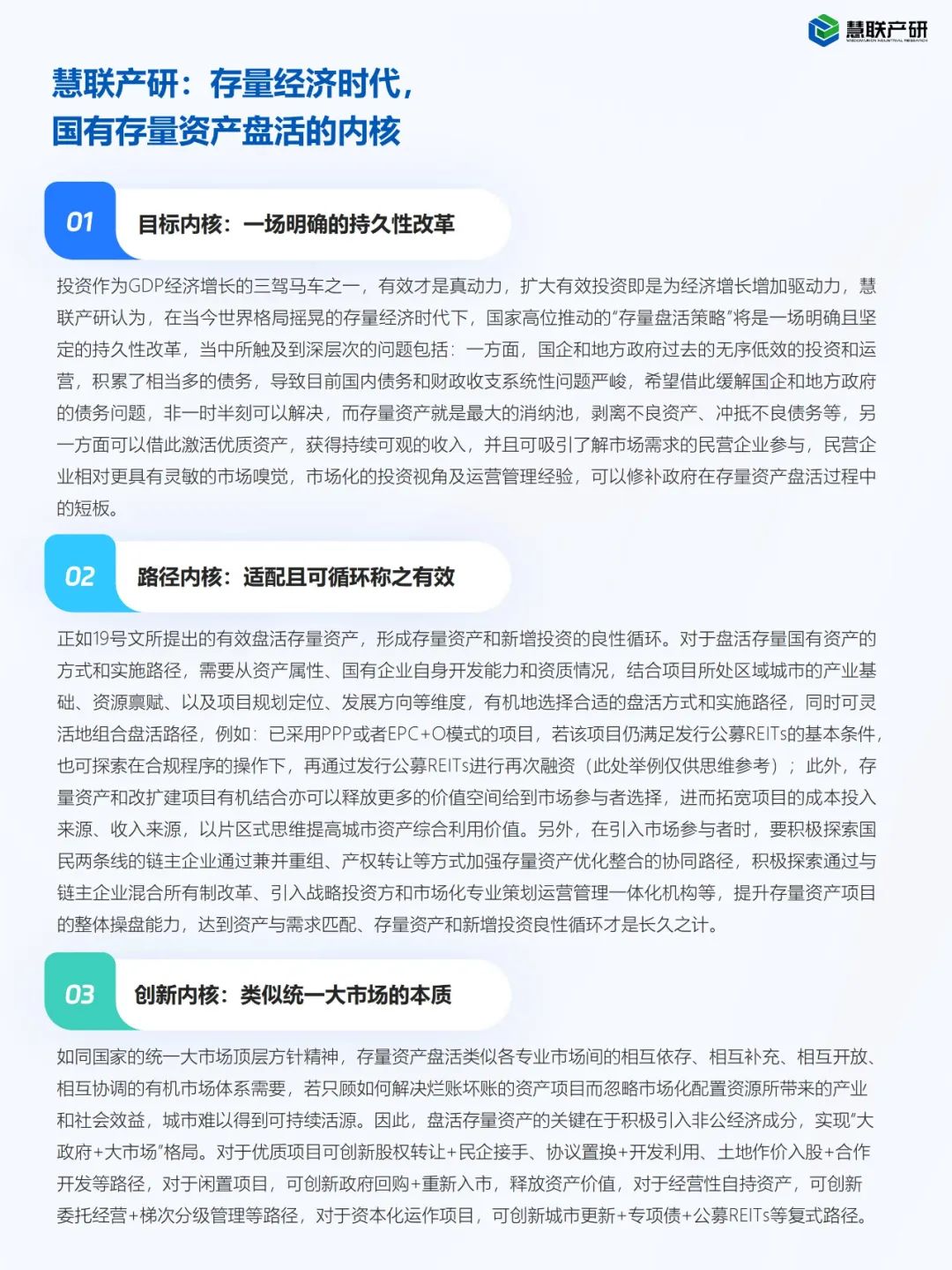本报告中,慧联产研提出了存量经济时代,国有存量资产盘活的三大内核。